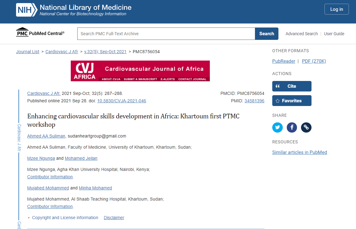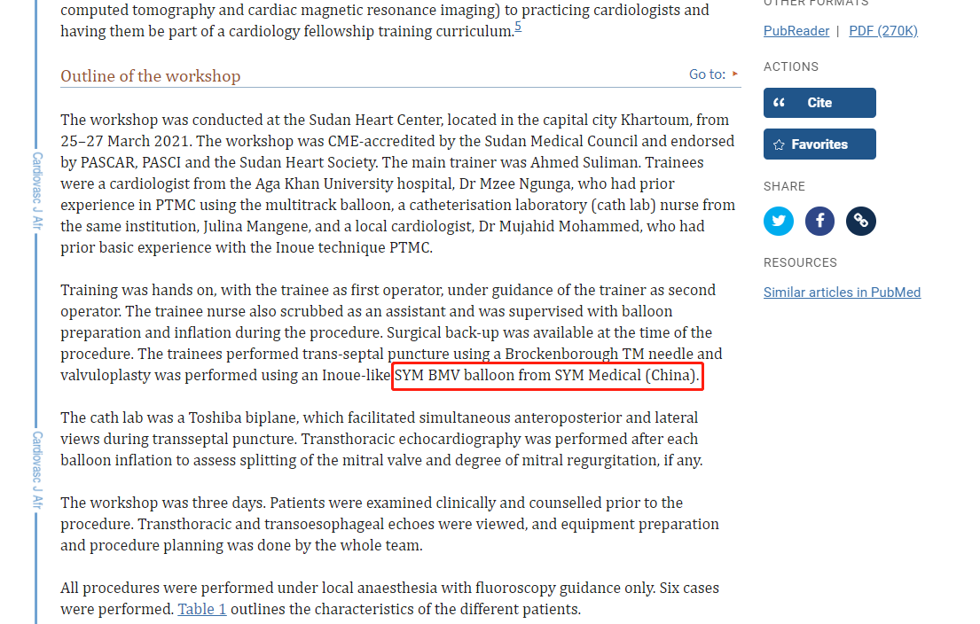 After Dr. Ahmed AA Suliman successfully conducted the workshop, he mentioned SYM Medical and our PBMV balloon in his article “Enhancing cardiovascular skills development in Africa: Khartoum first PTMC workshop” in the well-known Cardiovascular Journal of Africa.