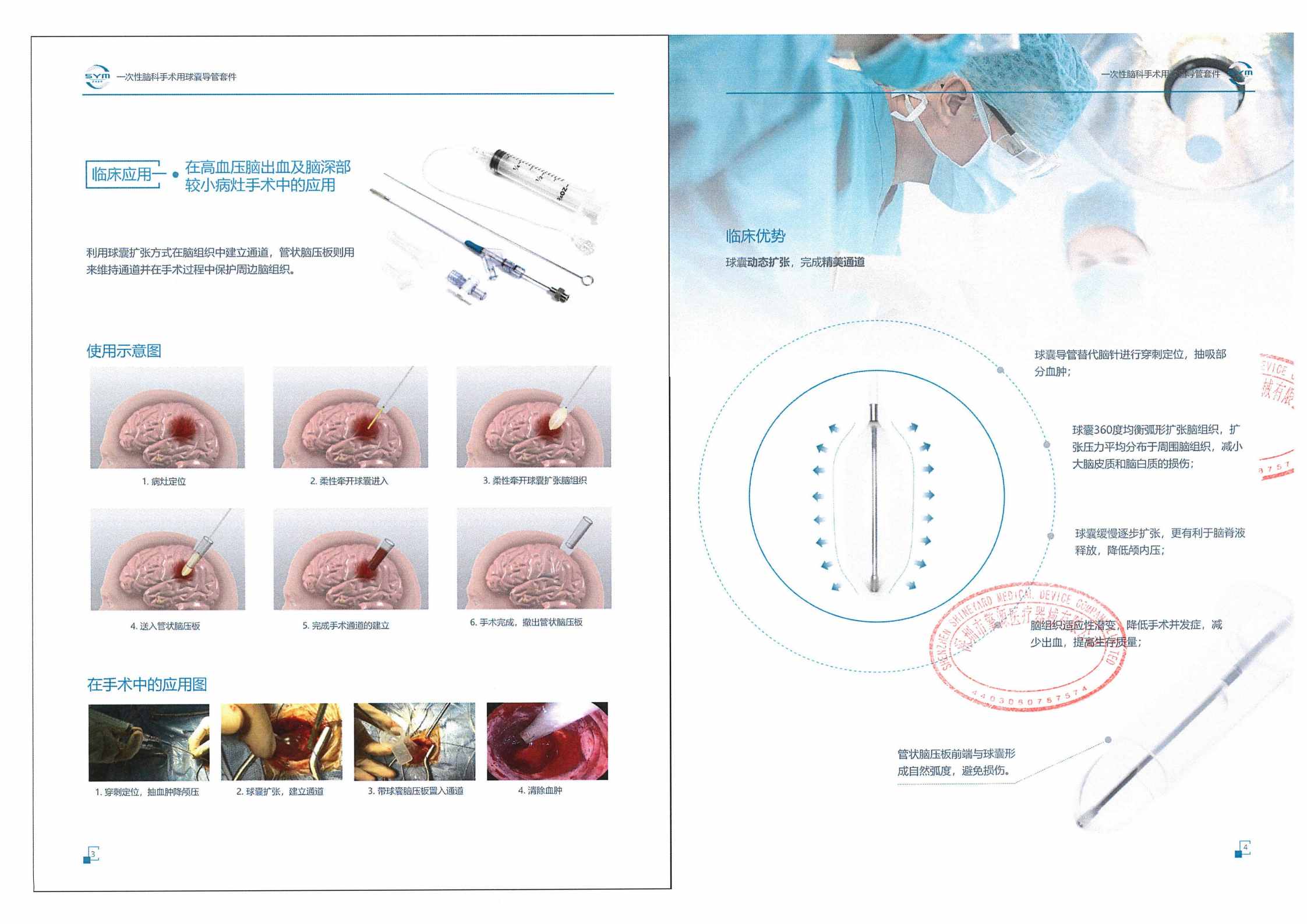 柔性牽開球囊和預(yù)定位牽開球囊利用球囊擴(kuò)張方式進(jìn)行腦組織牽開并在腦組織中形成通道;管狀腦壓板則用來固定和保持牽開后的腦組織、形成穩(wěn)定的手術(shù)通道并在手術(shù)過程中保護(hù)周圍正常腦組織、避免誤傷。