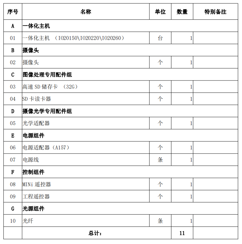 由主機(jī)、攝像頭、光纖、電源適配器、遙控器等組件組成。