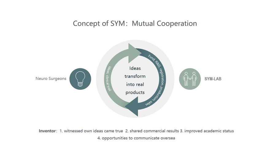 SYM-LAB is an open and mutually beneficial project development platform, focusing on neurosurgery. It integrates the resources that SYM accumulated in the R&D, production and registration of medical devices for over 20 years. Innovation is the core of SYM-LAB, which is to turn the ideas from medical experts into valuable clinical products.